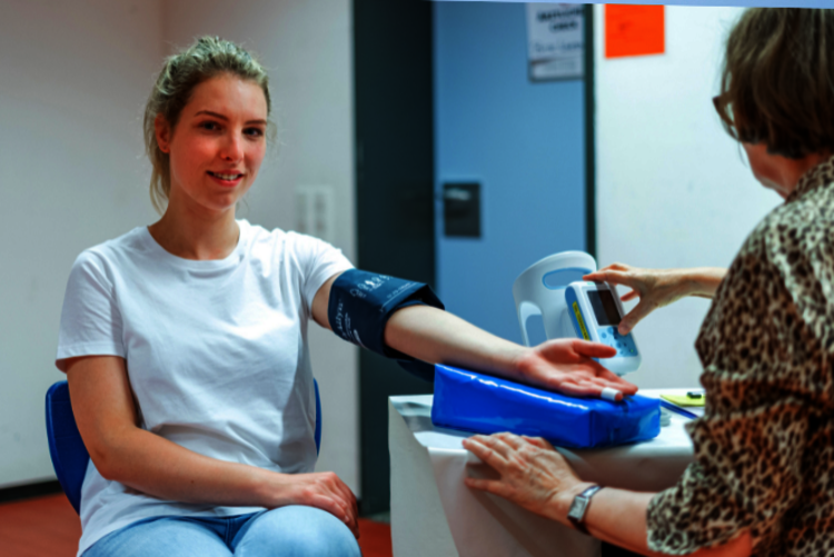 Ein Arzt oder eine Ärztin bespricht mit Ihnen den ausgefüllten Fragebogen, die erhobenen Gesundheitsdaten und entscheidet dann, ob Sie heute Blutspenden können. Ebenso wird der Blutdruck und der Puls vor jeder Blutspende geprüft.